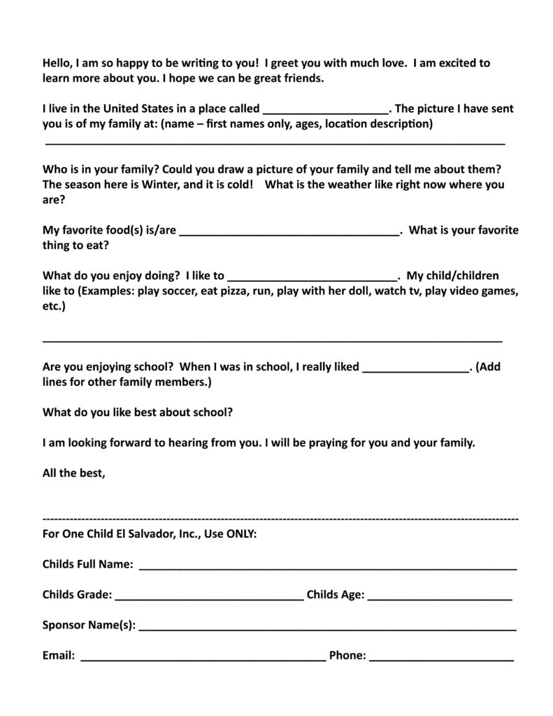 To ensure that your first letter is translated and ready for delivery by the mission team, please return your completed letter and any photo by February 1st, 2023.
